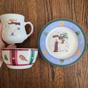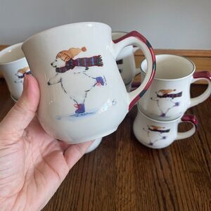 Set of 8 Pfaltzgraff Polar Bear Mugs 14 oz Ice Skating Bear With Hat
