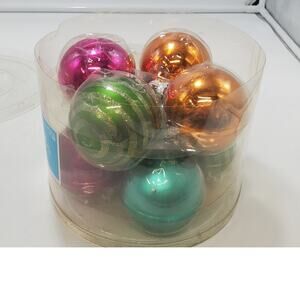 Add a festive touch to your holiday decor with this set of 8 multi-colored glass ornaments from Target! These beautiful ornaments come in their original box, ready to adorn your Christmas tree or add sparkle to any seasonal display. They make a great gift for anyone who loves holiday decorations. Get ready to celebrate in style! 3 of the 8 globes are adorned wth glitter. Each measures approximately 10" around & 3.5" tall. Our Inv# ORN 410