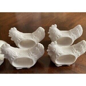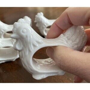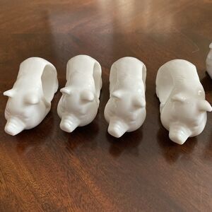 Set of 8 Vtg Shafford Ceramic Napkin Ring Holders TURKEYS & PIGS Thanksgiving