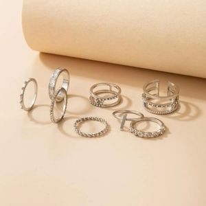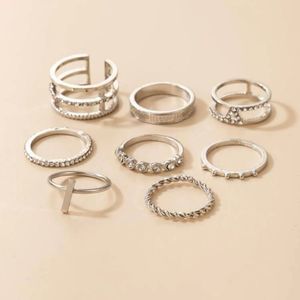 Set of 8 silver stackable rings, braided jewelry, cross ring, simplistic jewelry