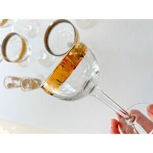 Set of 9 Vintage Etched Gold Rimmed Encrusted Crystal Wine Cordial Glasses