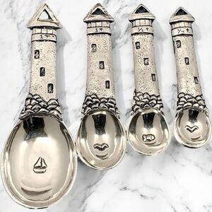 Elegant silver measuring spoons tied with a vibrant blue ribbon. Perfect for adding a touch of style to your kitchen. I have other lighthouse items in my closet. Will be perfect for an Airbnb beach house theme.