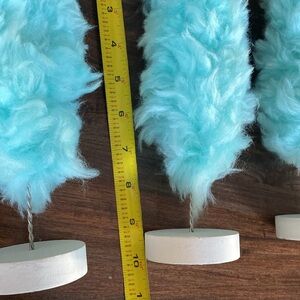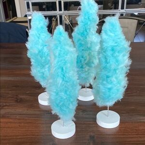 Charming turquoise feathered trees for festive decor. Ideal for adding a playful touch. Reminiscent of Dr. Seuss
