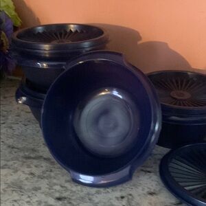 Set of Blue Microwave Bowls with Lids