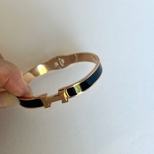 New Set of Braclet and Earrings Pose Gold Metal Black Ceramics Made in Korea. Diameter of bracelet 2.2”. In excellent condition, new without tag.