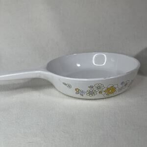 This set of Corning Ware Floral Bouquet VTG P83-B Fry Pan and P52B Sauce Pan with Lid is a vintage three-piece cookware set originating from America in the 1970s. Made of ceramic with a glossy finish, the pans feature a retro floral bouquet pattern in multi-color. The set includes a lid, two pans, and is oven-safe, microwave-safe, and dishwasher-safe, making it a versatile addition to your kitchen. With its original production style and brand, this set is a classic piece of decorative cookware that adds both style and functionality to your cooking experience.
