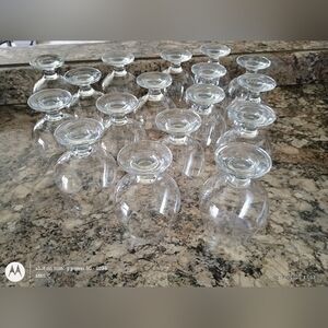 Elegant clear glass goblets. Perfect for entertaining. set of 17. perfect for events. perfect for house. cocktail wine glasses brand new never used. these are all brand new the boxes got damaged so they were taken out of the box but have never been used