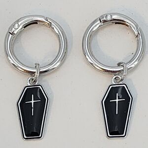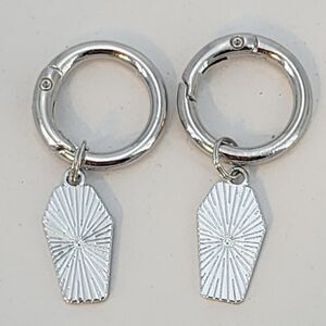 Set of Coffin Boot Charms Silvertone Metal Coffin with Cross