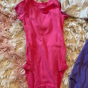 Adorable set of baby onesies in various colors. Includes orange, purple, gray, and pink options. Perfect for everyday wear. Mix of carters, Burts bees and cloud island