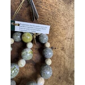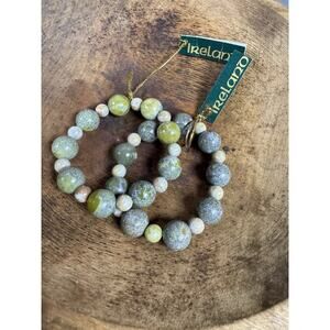 Set of two authentic Connemara Marble bracelets, handcrafted in Ireland by J.C. Walsh & Sons Ltd. Each bracelet is strung with polished green marble beads sourced from their quarry in Lissoughter, Connemara, Co. Galway. Includes the original “Made in Ireland” tags.