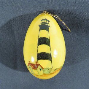 Set of Four (4) Hand Painted NC Lighthouse Ornaments Egg Shells Christmas