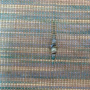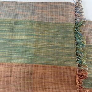 100% cotton - orange, green, blue, pink subdued plaid - called Arizona Sunset on the tag - machine wash