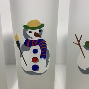 Set of Four Frosted Glass Tumblers with Snowman Design Festive Seasonal Bar ware