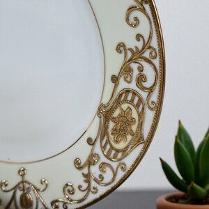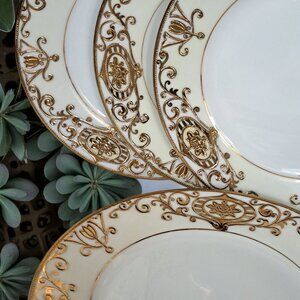 Set of Four Noritake 175 Christmas Ball Bread Plates with raised gold trim on rims