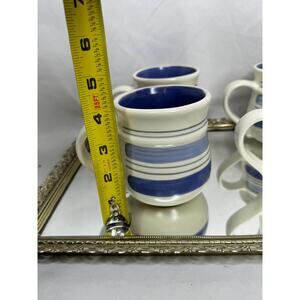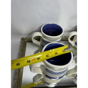 Set of Four Vintage Pfaltzgraff “Rio” Coffee Cups Blue and White Stoneware Mugs