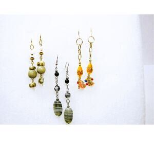 Set of Handcrafted long Gemstone Art Glass Beaded Dangle Drop Earrings 2 inch