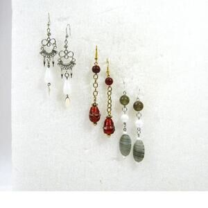 Set of 3 pair handcrafted earrings which I create from repurposed refurbished vintage jewelry, beads and findings which makes each pair one-of a kind!