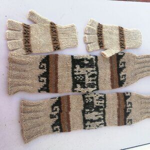 Set of Leg Warmers and Gloves Knitted Wool Flames Winter Warm