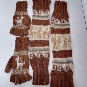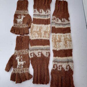 Set of Leg Warmers and Gloves Knitted in Alpaca Wool.