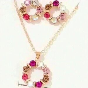 This charming set features a delicate bracelet, necklace, and earrings, each adorned with a wreath of vibrant multicolor Zirconia. Perfectly crafted with a gold finish, these pieces add a touch of playful elegance and sparkle to any look