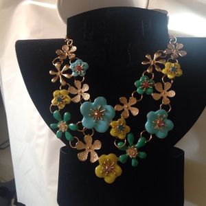 SPRING FLOWERS ENAMEL STATEMENT NECKLACE. And Bracelet Beautiful Spring flowers enameled Bracelet