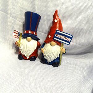 Here is a set of 2 Patriotic Gnomes. They are resin measuring 7" and 8". They are very cute and in very good condition each.