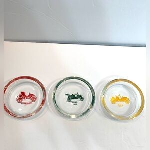 Set of Three (3) Classic Car Themed Glass Ashtrays/Coasters
