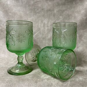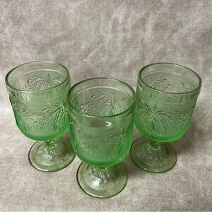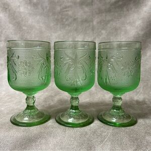 Set of Three (3) Footed, Tiara Chantilly Green Sandwich Glasses