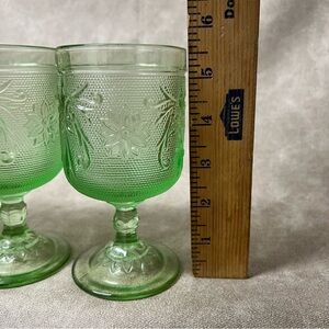Set of Three (3) Footed, Tiara Chantilly Green Sandwich Glasses in excellent condition