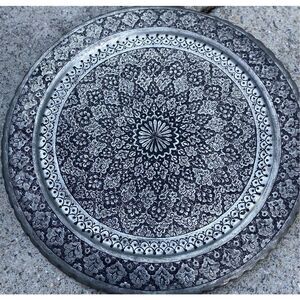Set of Three Decorative Tray Middle Eastern Engraved Patina 19”