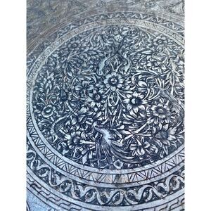 Middle Eastern Engraved Copper Tray with rich patina and very detailed carving. Hinged at the back. Can be used as a wall decor or on a side table.