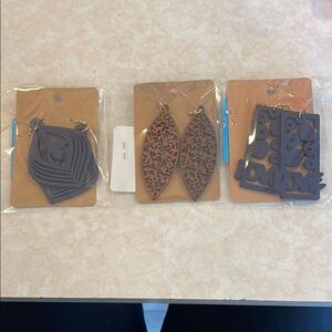 Set of Three Pair of Stylish Wood Earrings