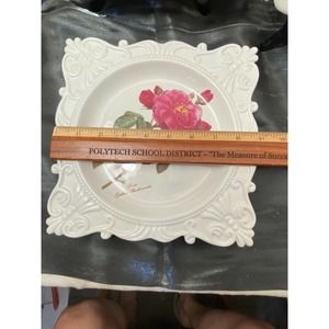 Vintage Set of Three (3) Redoute Roses Collection Square Plates by Baum Bros. “formalities”