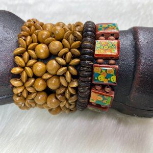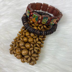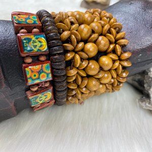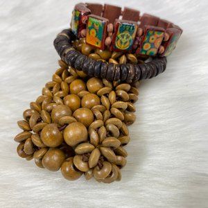 Set of Three Wood Boho Stretchy Bracelets Hippie Peace Organic