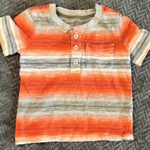 Both are gently used shirts without stains or rips. One is a a blue and orange striped and the other is a polo with the cutest little chameleon on it.