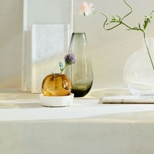 West Elm amber glass bud vase used once for cocktail hour tables at my wedding.