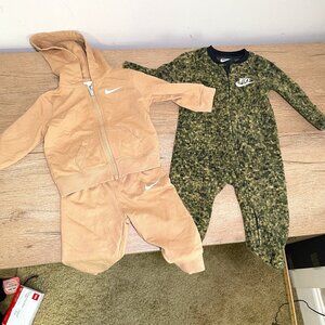 Set of Two Baby Boy Nike Outfits - Camo Footie (3M) & Tan Nike Track Suit (6M)
