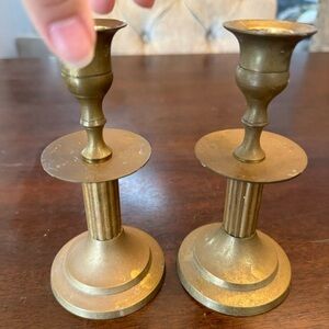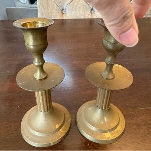 Set of Two Enesco Vintage Solid Brass Candleholders 6" India Patina