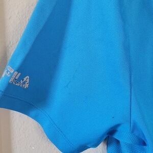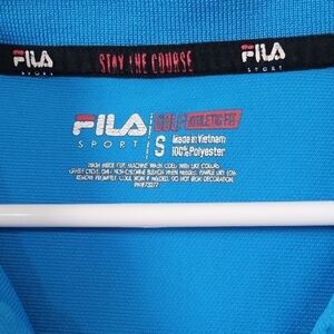 Men's bright blue and navy Fila Sports golf performance polos. ๐