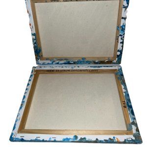 Set of Two Framed Canvas Paint Pour Style Paintings Artist Laura Mellencamp11x14