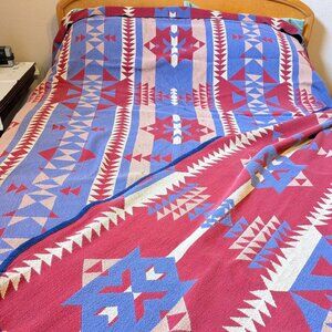 Pair of hand made pot holders newly made, never used Rag rug style Woven, braided, spiral Hanging loop 7 inches across Tan, orange and red New