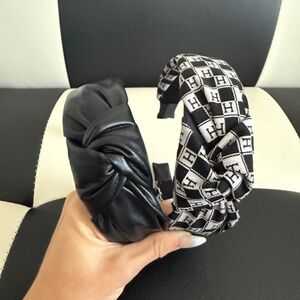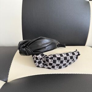 Set of two headbands. One black and beige "H" monogram fabric. The other is a black faux leather. Lightly used. Excellent condition.