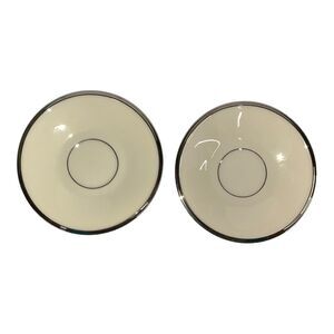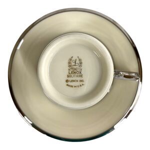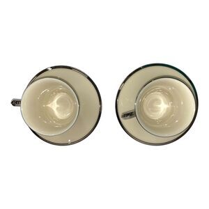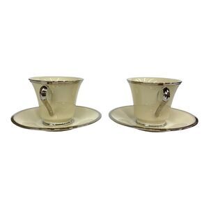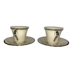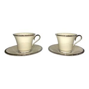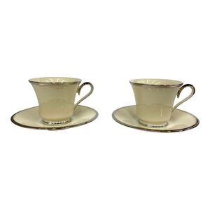 Set of Two Lenox Solitaire Teacup and Saucer in Ivory with Platinum Silver Rim