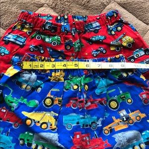 Brand new very sweet boys cotton shorts, one with construction trucks, the other with fire trucks ambulances. Elastic waist. No rips tears stains or holes nonsmoking home