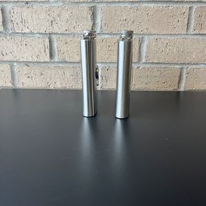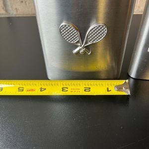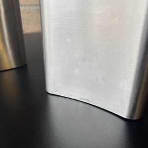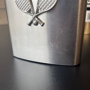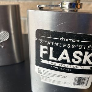 Set of Two Stainless Steel Flask 8 oz 5 in x 4 in x 1 in These are used. There are some scratches but these will still work for the purpose its intended. Please view photos