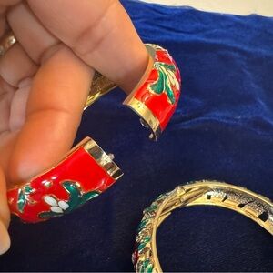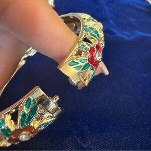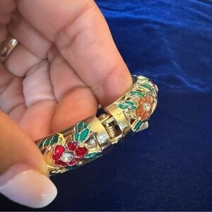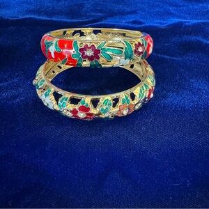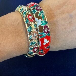 Set of Two Vintage Jiu Lang Xing Enamel Floral Gold Tone Multicolor Bracelets