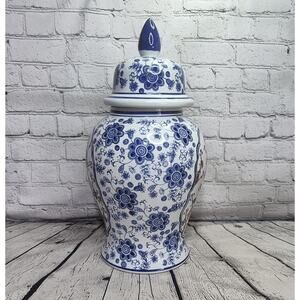 Set of Two Vintage Temple Jars With blue Bird Vase with Lid by Sagebrook Home