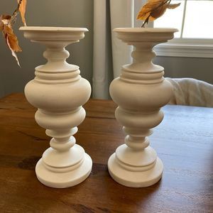 Beautiful white (almost like a soapstone) pillar candle holders.