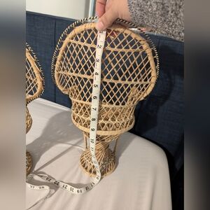 Beautiful set of two wicker peacock chairs. Intricate woven design. Perfect for decor or doll furniture.