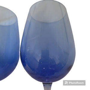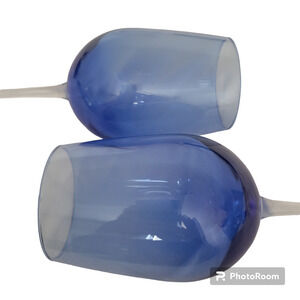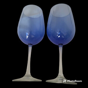 Set of Two Wine or Water Glasses Hand Blown 9 inches Tall Blue Tint